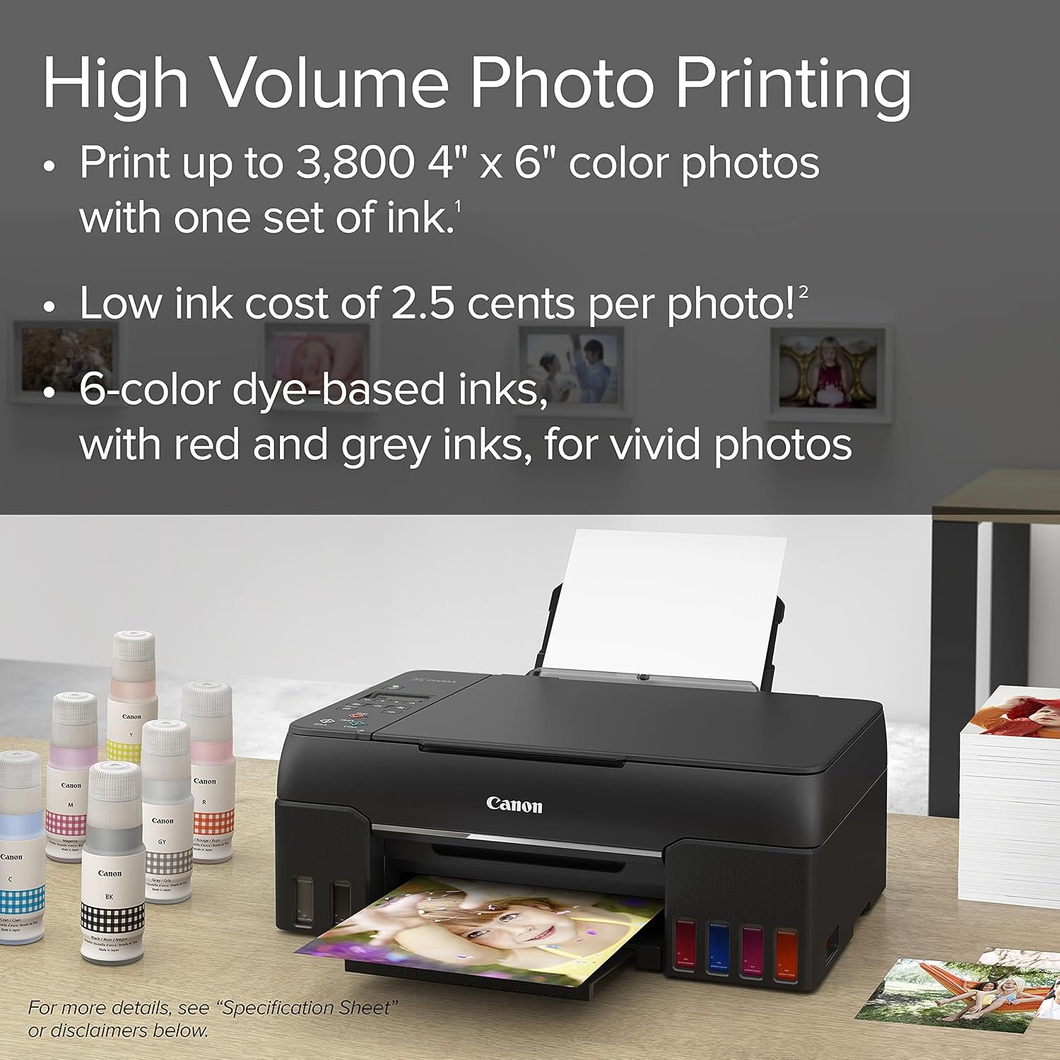 9.1/10 (Expert Score)A high-quality, cost-effective photo printer with a six-color dye-based ink system, wireless connectivity, and MegaTank technology for long-lasting, vibrant prints.