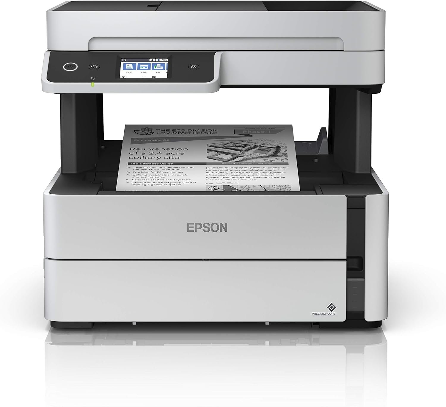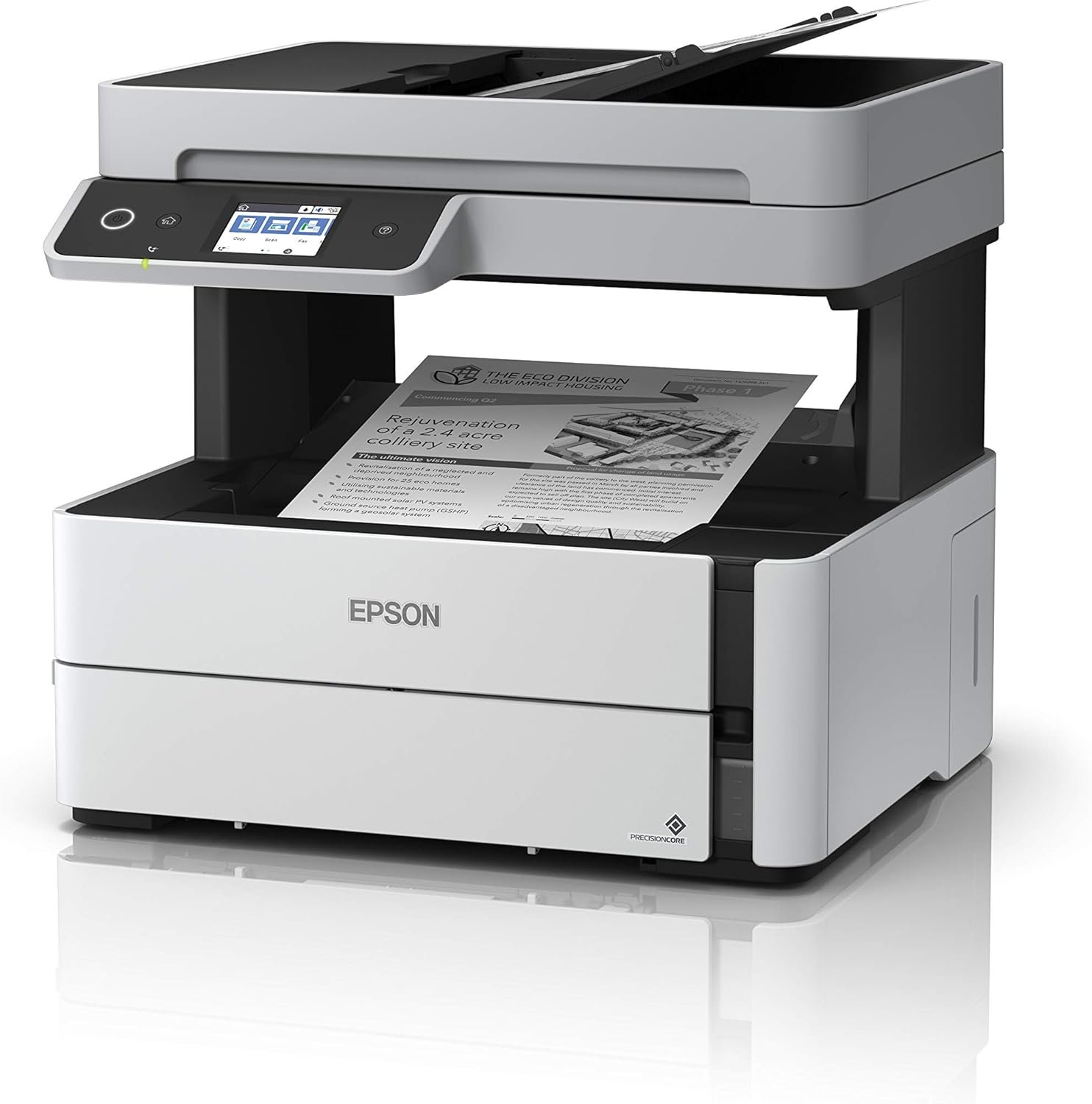 9.2/10 (Expert Score)A fast, all-in-one wireless monochrome printer with an EcoTank refillable ink system, ADF, fax, and Ethernet connectivity for cost-effective business printing.