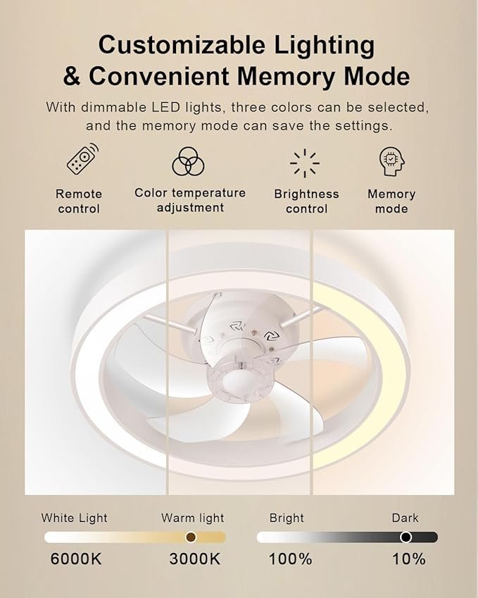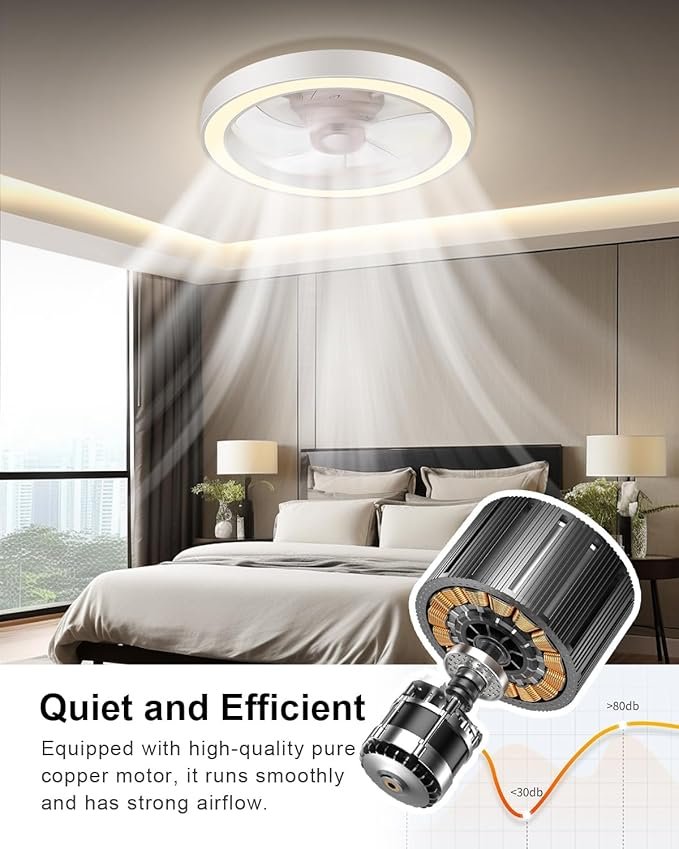 9.6/10 (Expert Score)Enhance your home with the DOURARY Flush Mount Ceiling Fan with Lights. Modern design, dimmable LED, 6 speeds, quiet operation, and reversible rotation for year-round comfort.