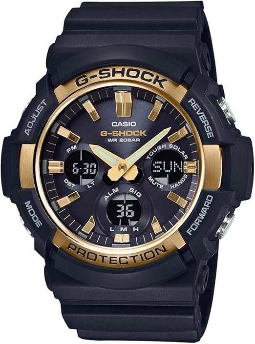The Casio GAS100G-1A is a robust and innovative G-Shock watch designed for men seeking durability and functionality. It features Tough Solar technology, eliminating the need for frequent battery changes. Equipped with the hand-shift feature and Super Illuminator for enhanced visibility, it is perfect for both outdoor adventures and daily wear. The shock-resistant design and 55.1mm resin/aluminum case ensure long-lasting reliability.