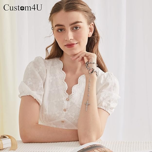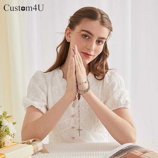 The Custom4U Personalized Rosary combines faith and sentimentality with a customizable photo pendant and durable stainless steel beads.