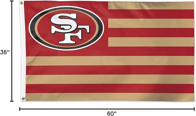 Show your team spirit with the Wincraft NFL San Francisco 49ers Flag. This officially licensed 3’x5′ flag features bold team colors and a durable design, perfect for displaying your loyalty indoors or outdoors. Made in the USA with high-quality materials, it’s designed to last through every season. Poles and hardware are sold separately. Ideal for tailgating, home decor, or cheering on the 49ers from your fan cave.
