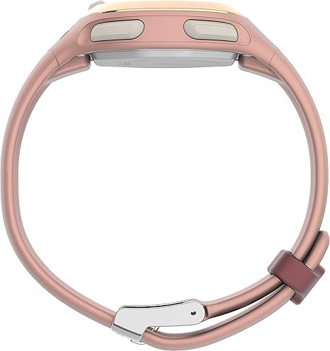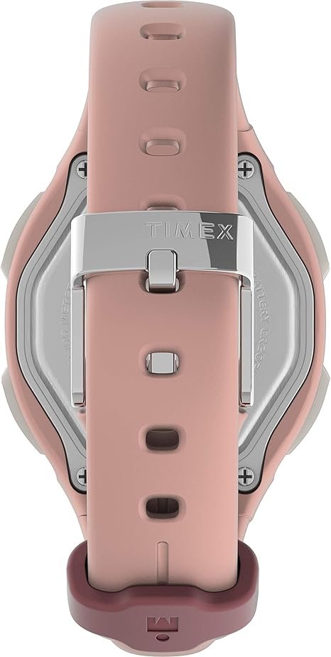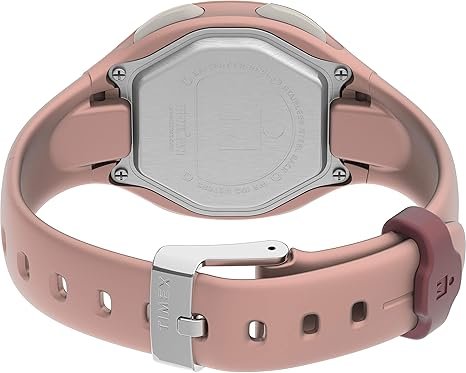 The Timex Women’s Ironman Transit is a compact and stylish sports watch designed for active lifestyles. It features a 100-hour chronograph with a 10-lap memory, a 24-hour countdown timer, and a customizable alarm. The rose gold-tone accents on the 33mm resin case give it a chic look, complemented by the pink resin strap, which is adjustable for wrists up to 7.5 inches. The Indiglo light-up watch dial and gray digital display ensure readability in all lighting conditions. Water-resistant up to 100 meters, this watch is suitable for swimming and snorkeling.
