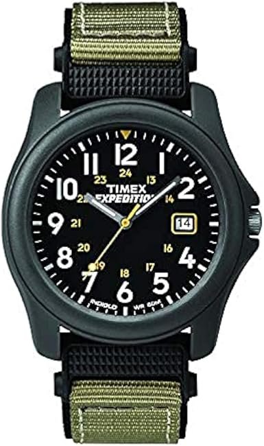 Durable Timex Men’s Expedition Camper Watch with nylon strap, Indiglo dial, and 50m water resistance.
