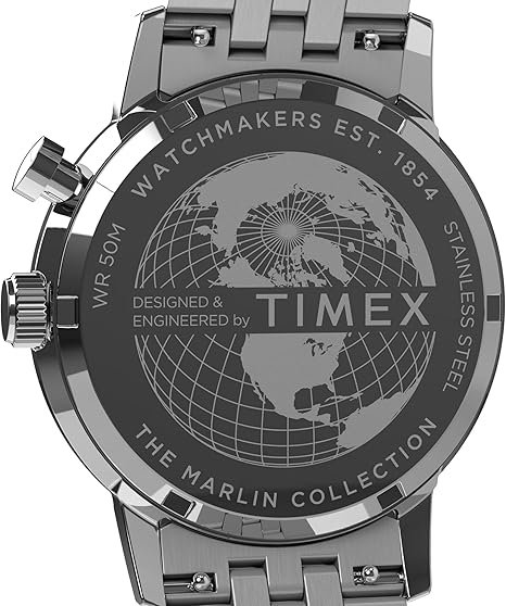 The Timex Men’s Marlin 40mm Watch combines vintage sophistication with modern functionality. Featuring a moon-phase subdial that mirrors the lunar cycle, this watch is a perfect accessory for those who value precision and style. The sleek stainless steel adjustable bracelet offers both comfort and a custom fit, while the sturdy recycled stainless steel case ensures durability. A rich green dial with applied indices enhances its elegant appeal, and the calendar movement provides day, date, and month information at a glance.